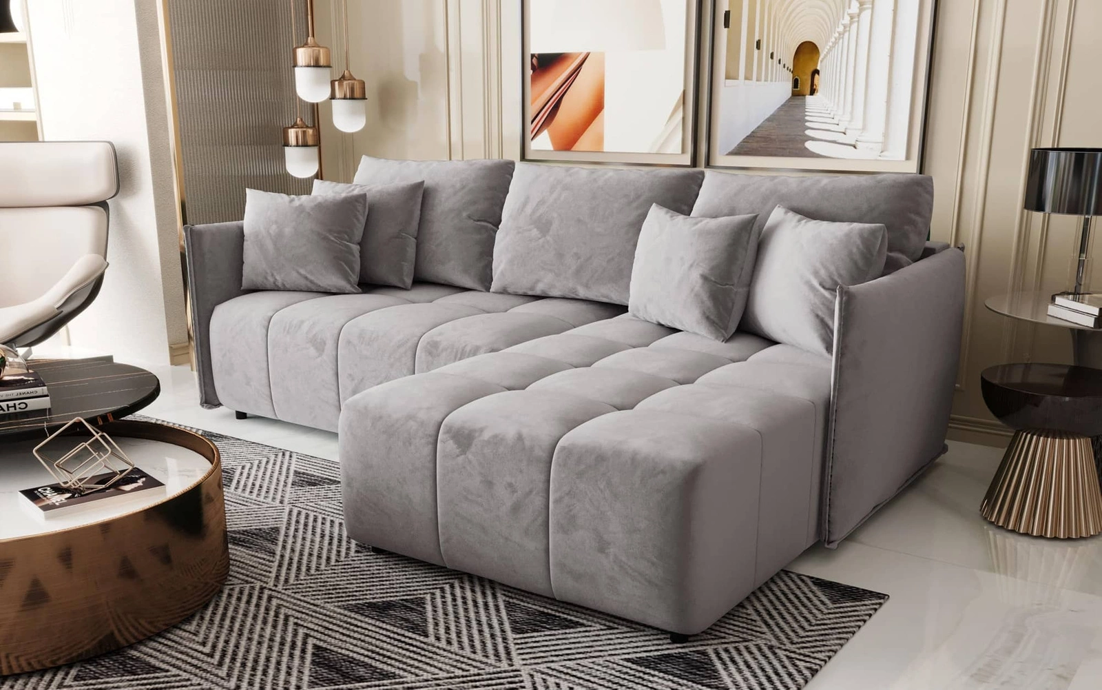 Podrobnosti o moderní rohové pohovce s funkcí spaní Oroso