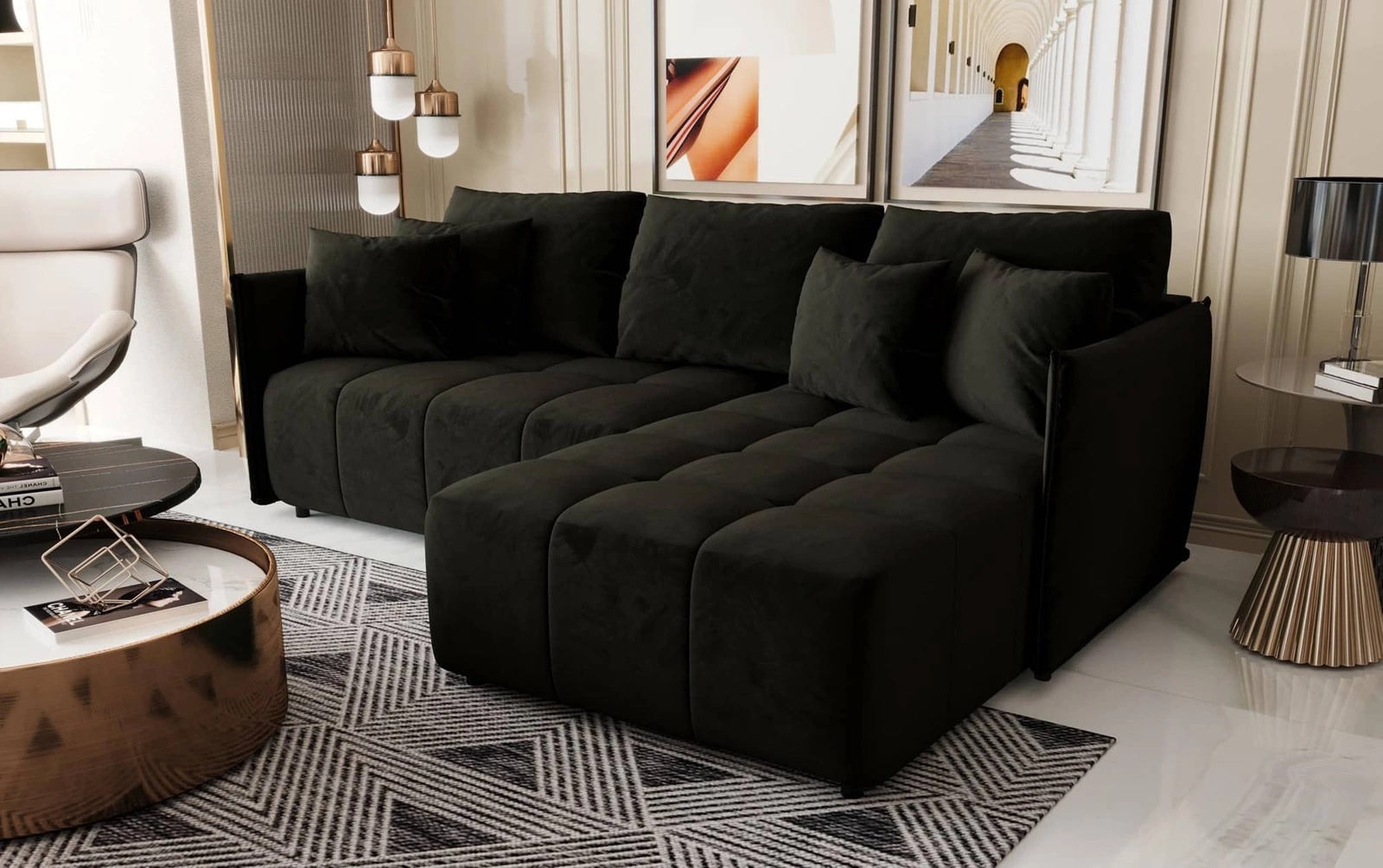 Podrobnosti o moderní rohové pohovce s funkcí spaní Oroso