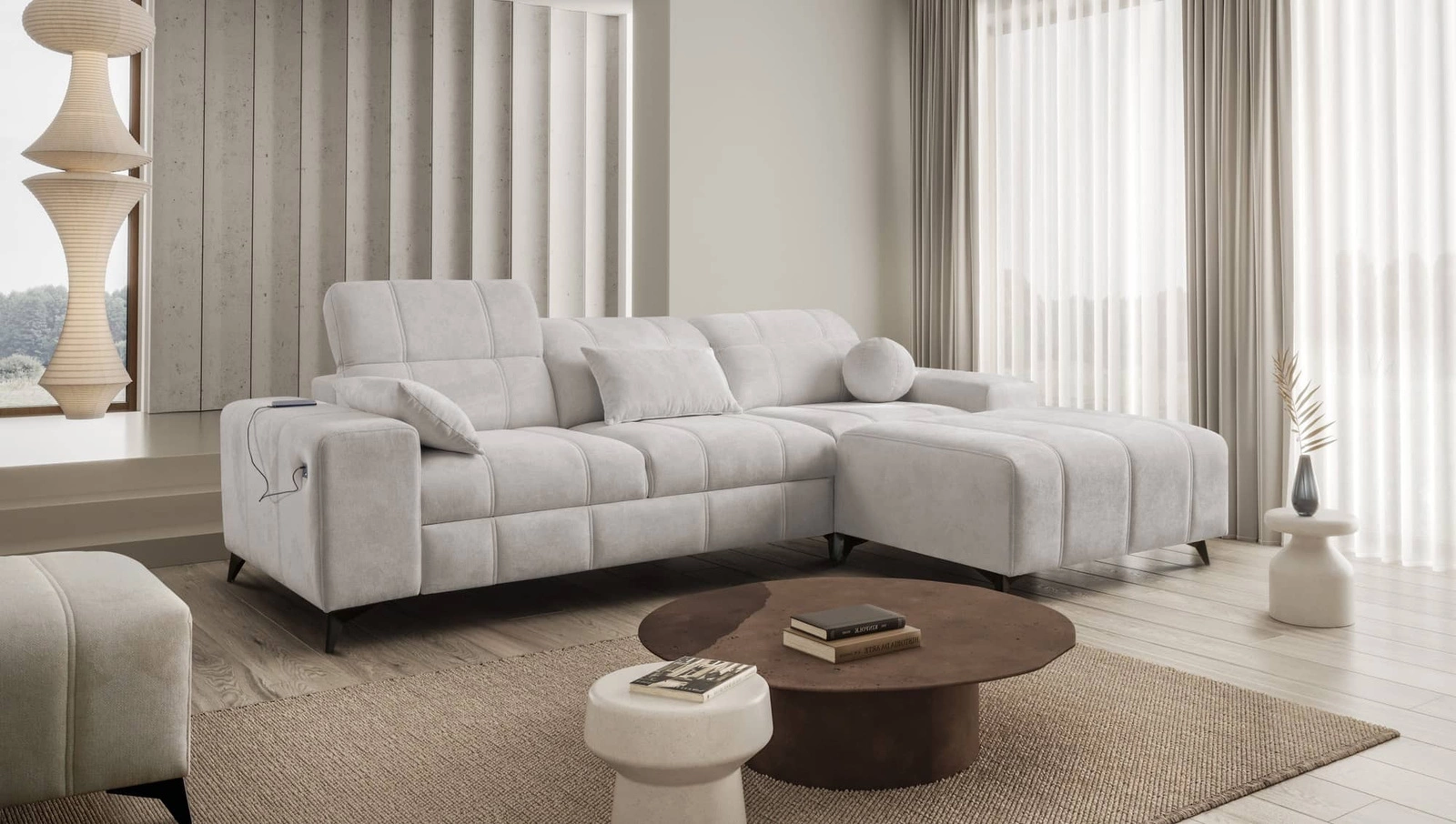 Mezi doplňky tohoto nábytku, které ocení všichni uživatelé, patří nádoba na lůžkoviny, funkce spaní a nabíjecí zásuvka USB na boku rohové skříně.