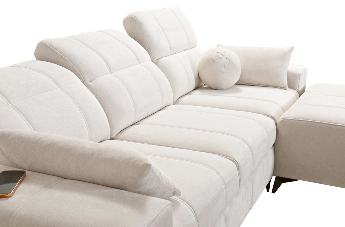 Podrobnosti o moderní rohové pohovce Penejos s funkcí spaní