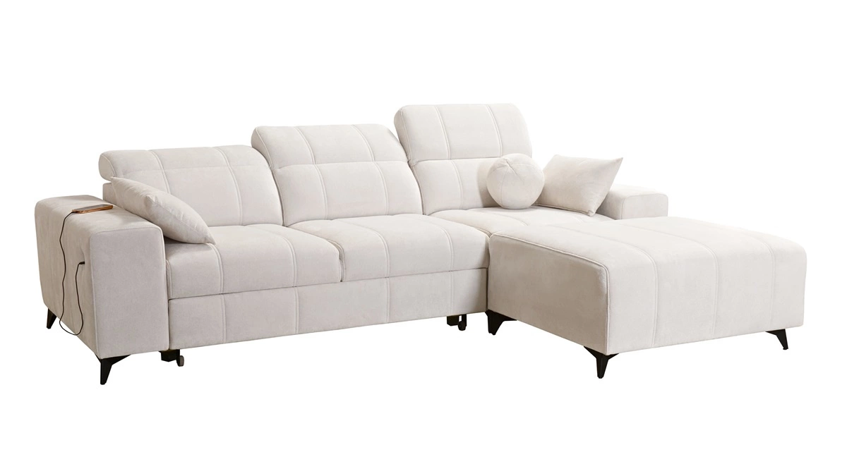 Mezi doplňky tohoto nábytku, které ocení všichni uživatelé, patří nádoba na lůžkoviny, funkce spaní a nabíjecí zásuvka USB na boku rohové skříně.
