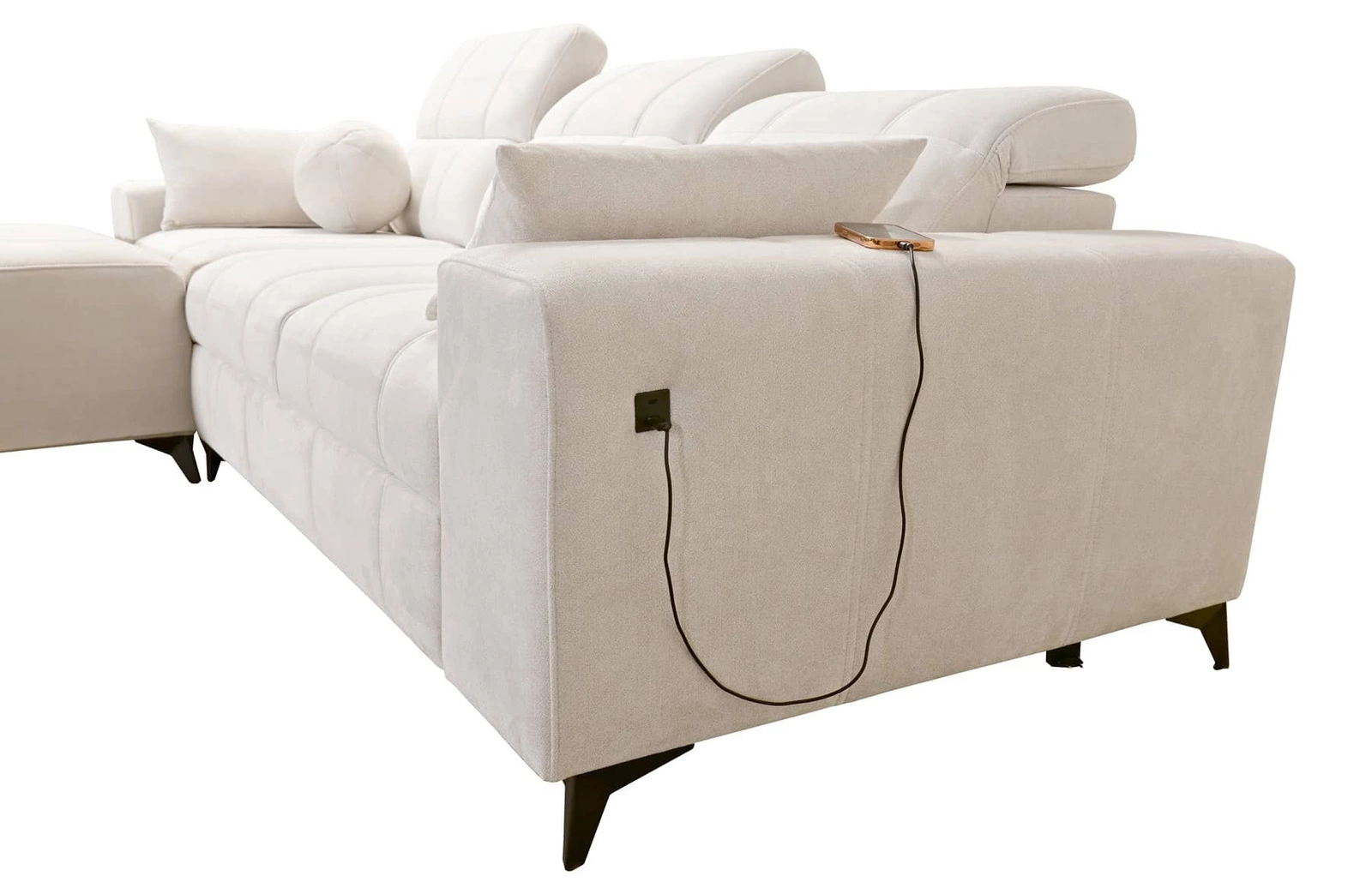 Mezi doplňky tohoto nábytku, které ocení všichni uživatelé, patří nádoba na lůžkoviny, funkce spaní a nabíjecí zásuvka USB na boku rohové skříně.