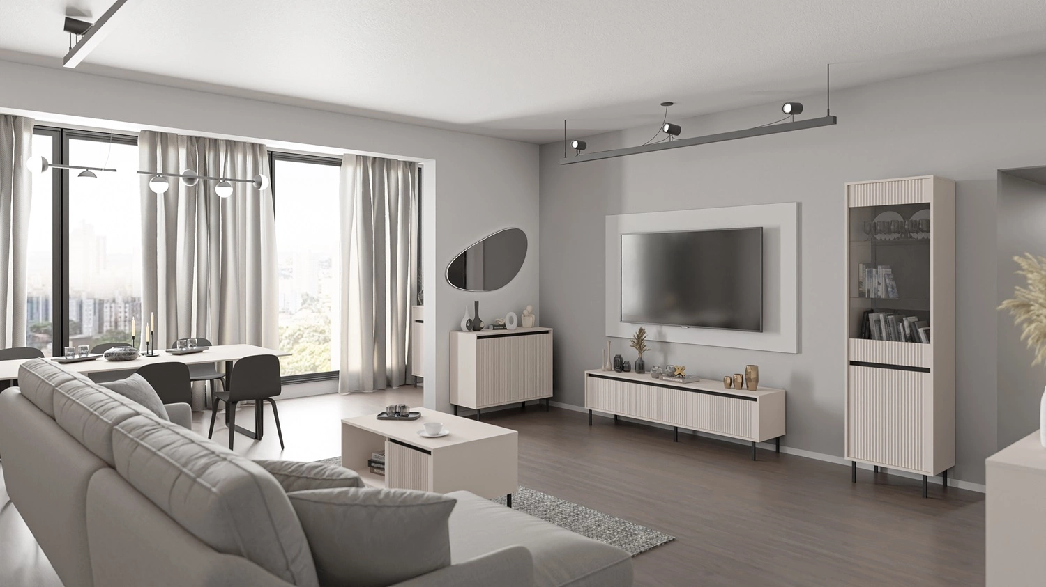 Drážkovaná čela v béžové byly vyrobeny z mDF. Tělo tabulky byl vyroben z vysoce kvalitní laminovaná deska tloušťka 16 mm, který je odolný vůči vnějším vlivům, jako jsou otlaky, nárazy a nešťastné škrábance. Otevřená police poskytuje další prostor pro vaše oblíbené knihy nebo časopisy. Kovové nohy v černé barvě dodávají vizuální lehkost při zachování funkčnosti.