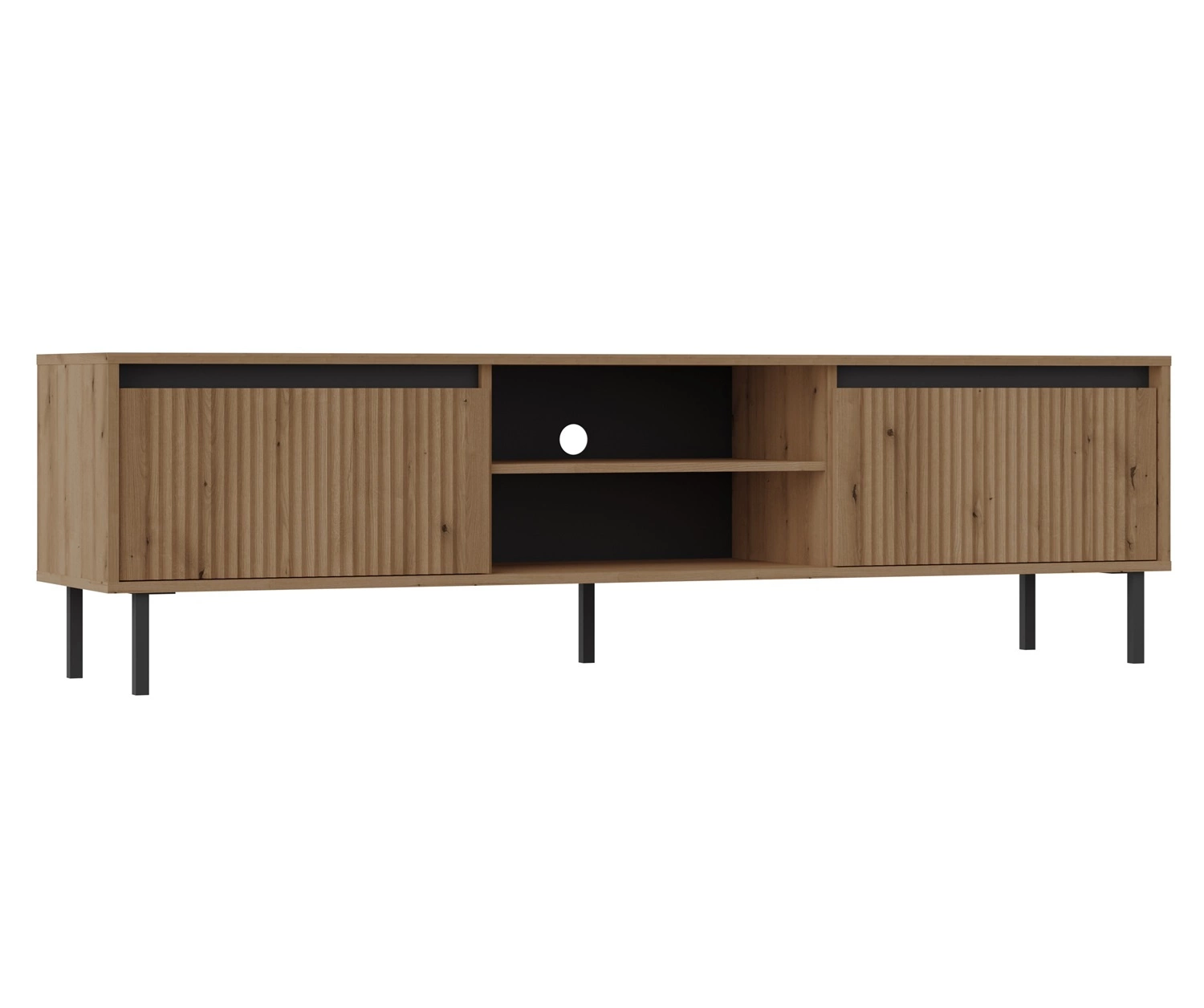 RTV Osaka 179 cm dub evoke / černá jednoduchá skříňka v módních barvách ideální pro interiéry v japonském stylu vkusné drážkované čelo