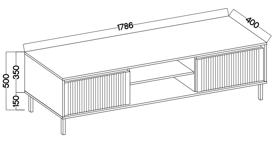 Drážkovaná čela v barvě dubu byly vyrobeny z mDF. Těleso skříně RTV vyrobeno z vysoce kvalitní laminovaná deska tloušťka 16 mm, která je odolná vůči vnějším vlivům, jako jsou otlaky, nárazy a nešťastné škrábance. Prostorné zásuvky pojme všechny vaše věci a nezbytné příslušenství. Výklenky uprostřed skříně jsou skvělým místem pro rtv zařízení nebo herní konzoli. Kovové nohy v barvě černá přidat zvláštní nádech a zároveň zachovat funkčnost.