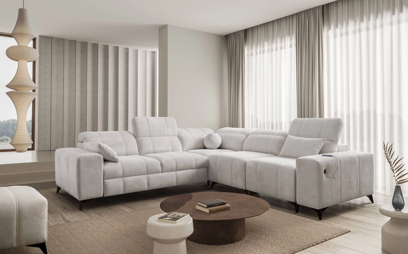 Rohová pohovka Penejos III v šedém jasanu s nastavitelnými opěrkami hlavy je nádherný kus nábytku se zárukou nejvyššího pohodlí a funkčnosti.