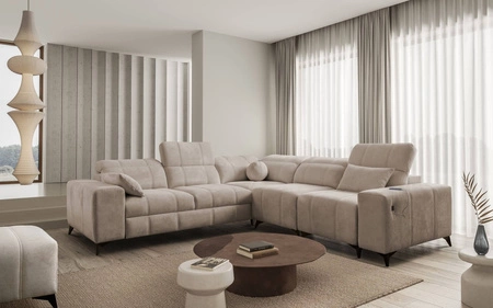 Rohová pohovka Penejos III v tmavě béžové barvě s nastavitelnými opěrkami hlavy je nádherný kus nábytku se zárukou nejvyššího pohodlí a funkčnosti.