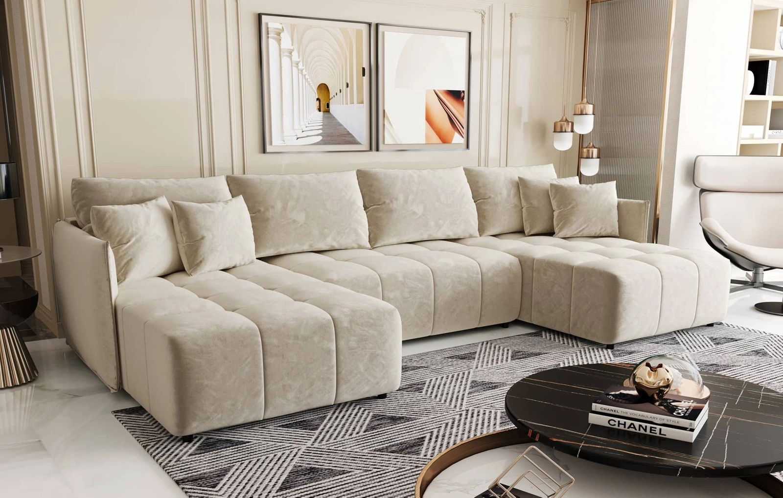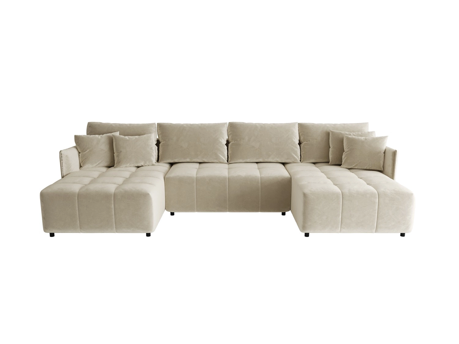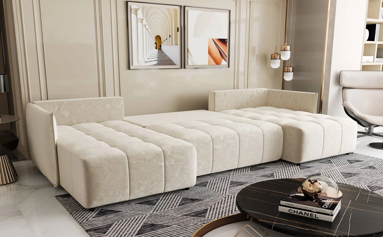 Rohová sedací souprava s funkcí spaní Oroso U béžový kontejner na lůžkoviny měkká sametová tkanina s hydrofobní vrstvou dekorativní prošívání