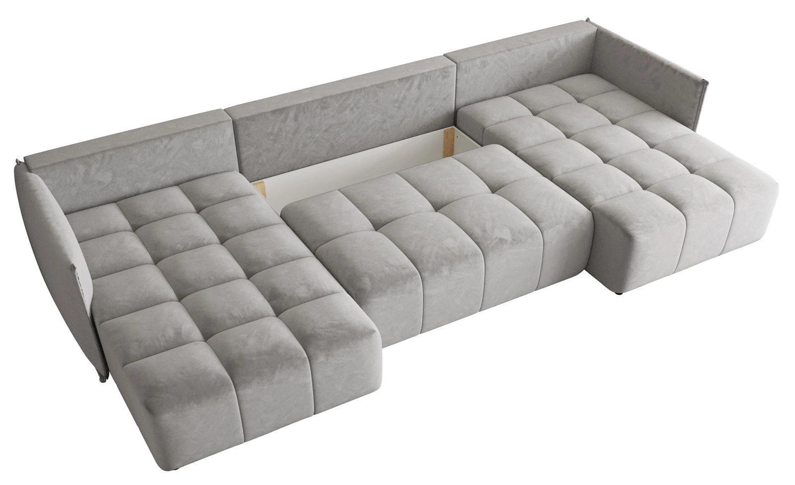 Rohová sedací souprava s funkcí spaní Oroso U světle šedý kontejner na lůžkoviny měkká sametová tkanina s hydrofobní vrstvou dekorativní prošívání