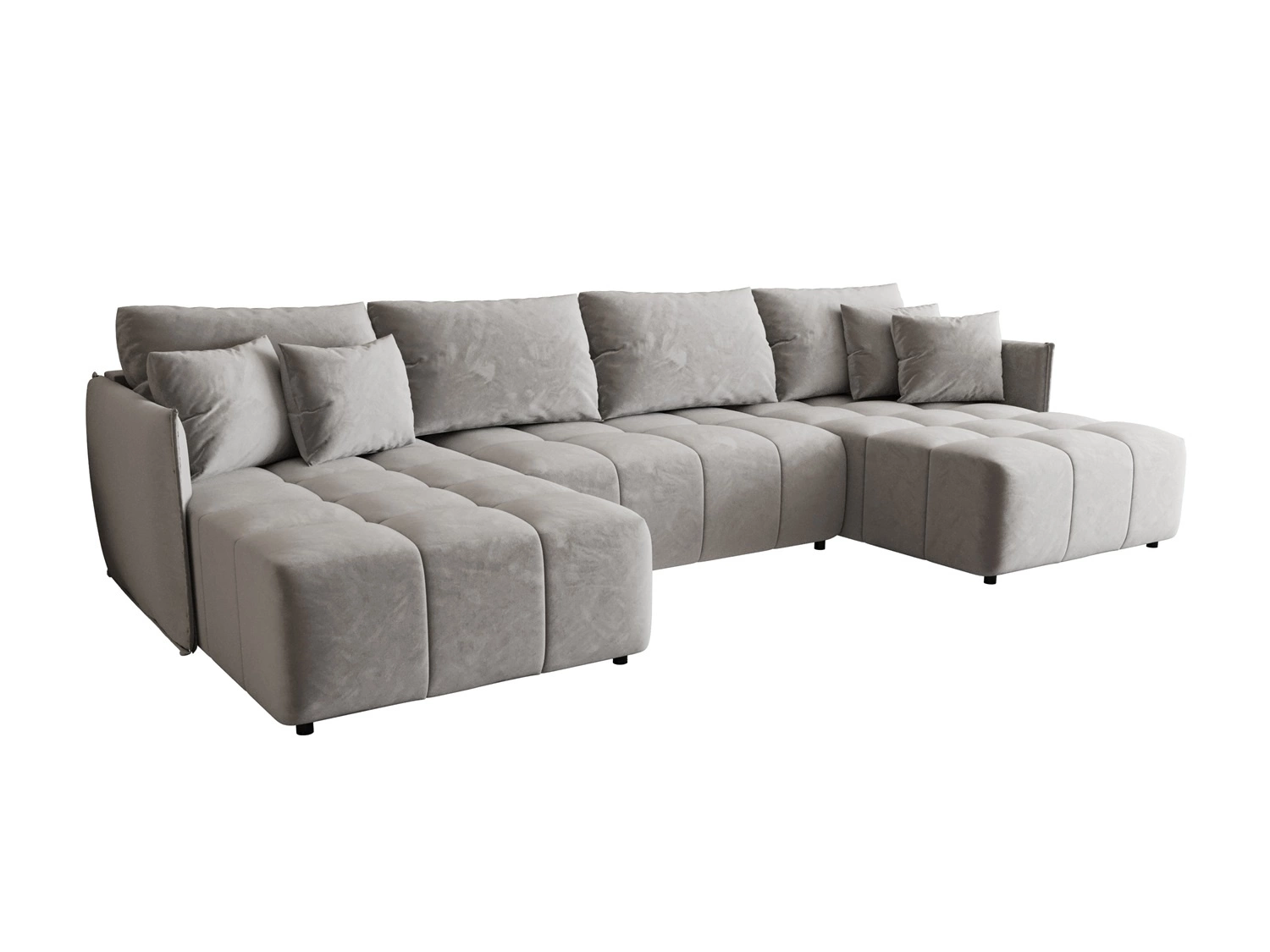 Díky svým rozměrům a široké funkčnosti je rohová pohovka s funkcí spaní ideální jako rohová pohovka do obývacího pokoje nebo jako rozkládací rohová pohovka do pokoje pro hosty. Rohová pohovka s funkcí spaní je také skvělou alternativou k posteli v pokoji pokoj pro mladé. Šířka rohu 342 cm, výška 88 cm a hloubka 190 cm. Spací plocha rohové jednotky je 145x330 cm. Výška sedadla nábytku je 44 cm, a výška opěradla je 44 cm. Vlnité pružiny a polyuretanová pěna T30 je materiál, z něhož je vyrobeno sedadlo rohu. Soft opěrné polštáře zajistí vysokou úroveň pohodlí při každodenním odpočinku, což oceníte vy i vaši hosté, kteří se na tuto jedinečnou rohovou sedačku posadí.