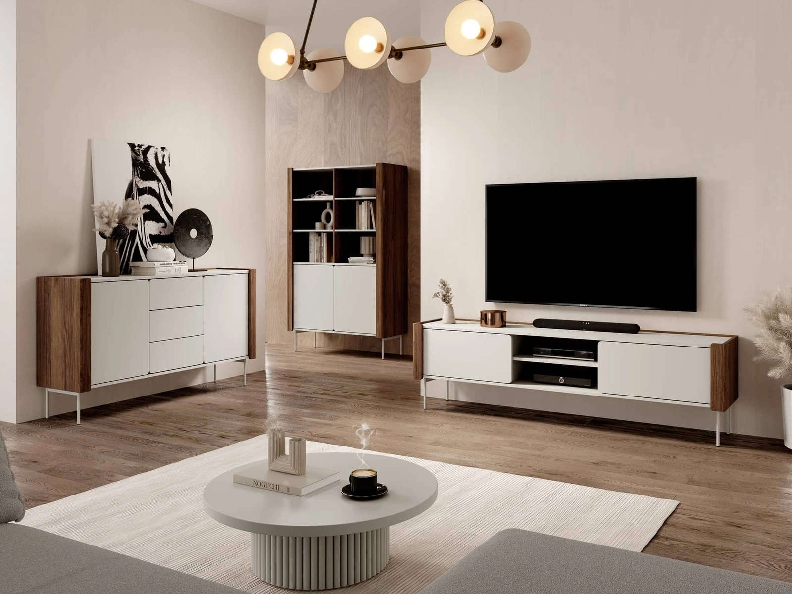 Stylová obývací stěna Tantuni ořech / béžová se zaoblenými předními hranami trendy barvy