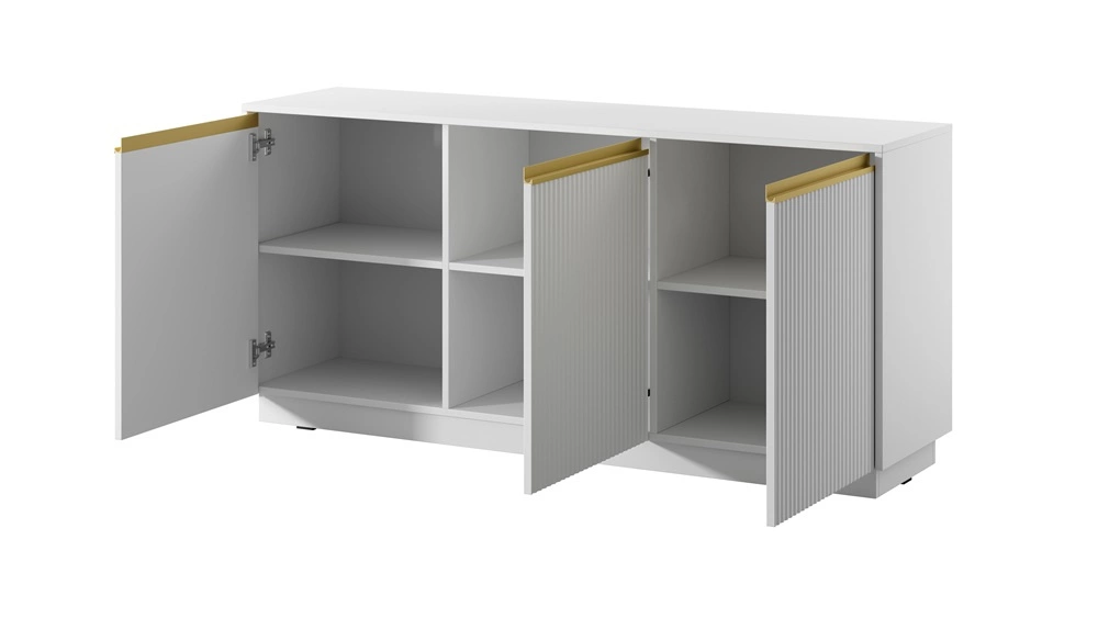 Bílá nábytková sestava Imperial Stylová nástěnná skříňka s frézovanými čely a elegantními úchytkami z broušeného zlata