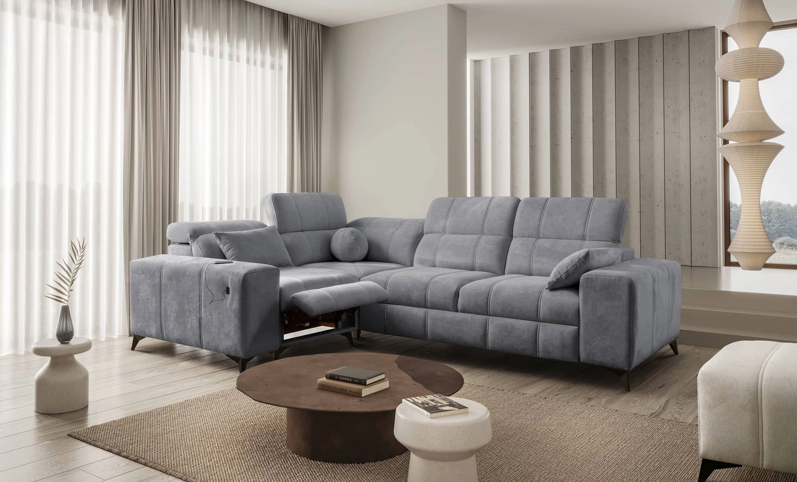 Mezi doplňky tohoto nábytku, které ocení všichni uživatelé, patří výsuvná podnožka, nastavitelné opěrky hlavy, funkce spánku a nabíjecí zásuvka USB na boku rohové jednotky.