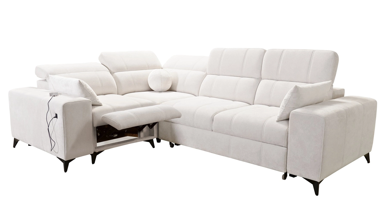 Mezi doplňky tohoto nábytku, které ocení všichni uživatelé, patří výsuvná podnožka, nastavitelné opěrky hlavy, funkce spánku a nabíjecí zásuvka USB na boku rohové jednotky.