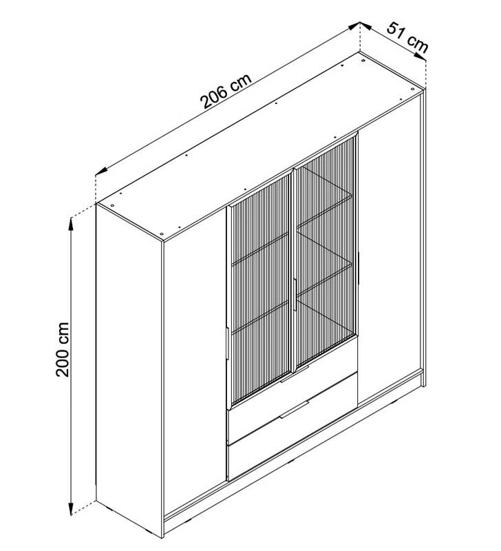 • Výklopná skříň Corse je pečlivě vyrobený a estetický kus nábytku. Moderní design skříně se hodí do každého interiéru. Neobvyklá čela s drážkovaným sklem a vkusnými úchyty na okrajích podtrhují styl a eleganci masivních skříní.