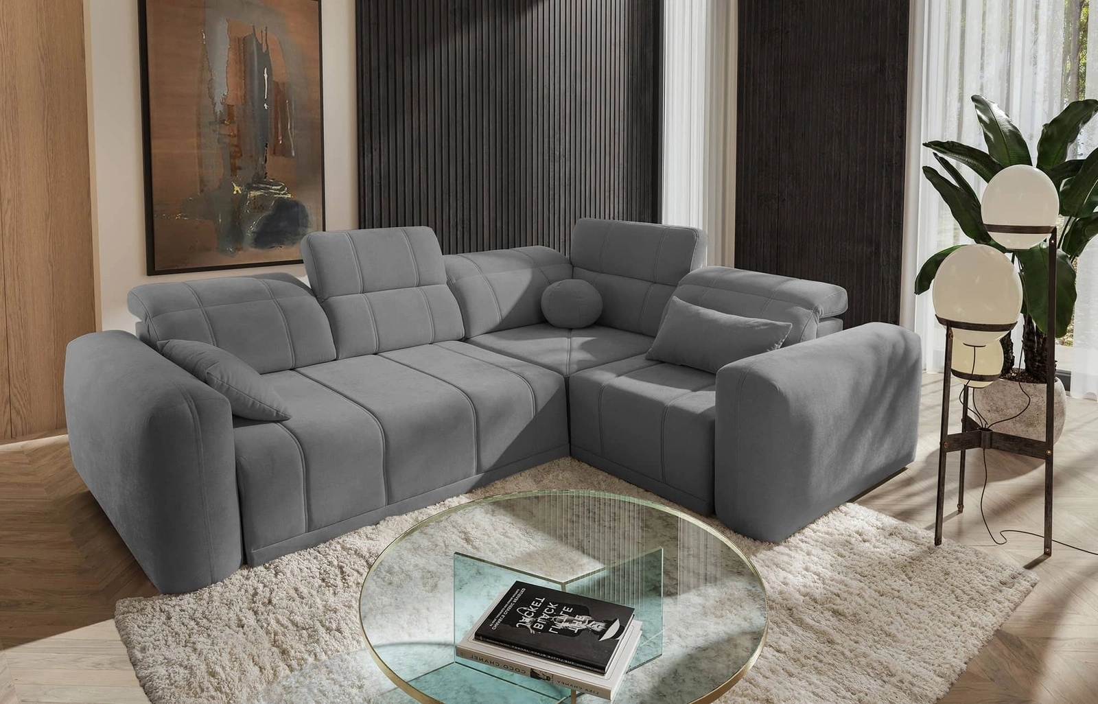 Rohová pohovka Cetara II v šedé barvě je mimořádně funkční kus nábytku se stylovou povrchovou úpravou.