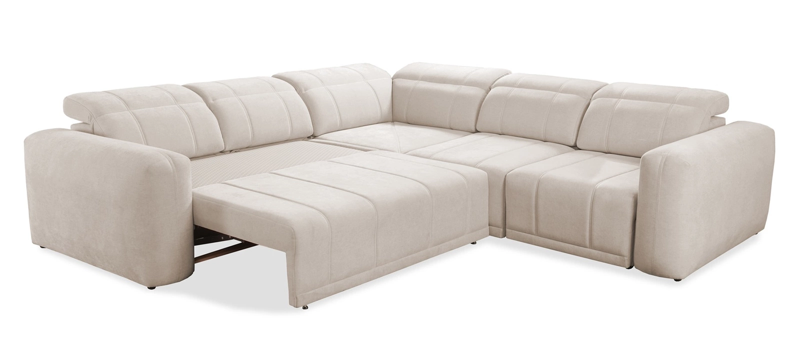 Rohová sedačka s funkcí spaní Cetara III béžová pravá ergonomická rohová sedačka s posuvným opěradlem a nastavitelnými opěrkami hlavy