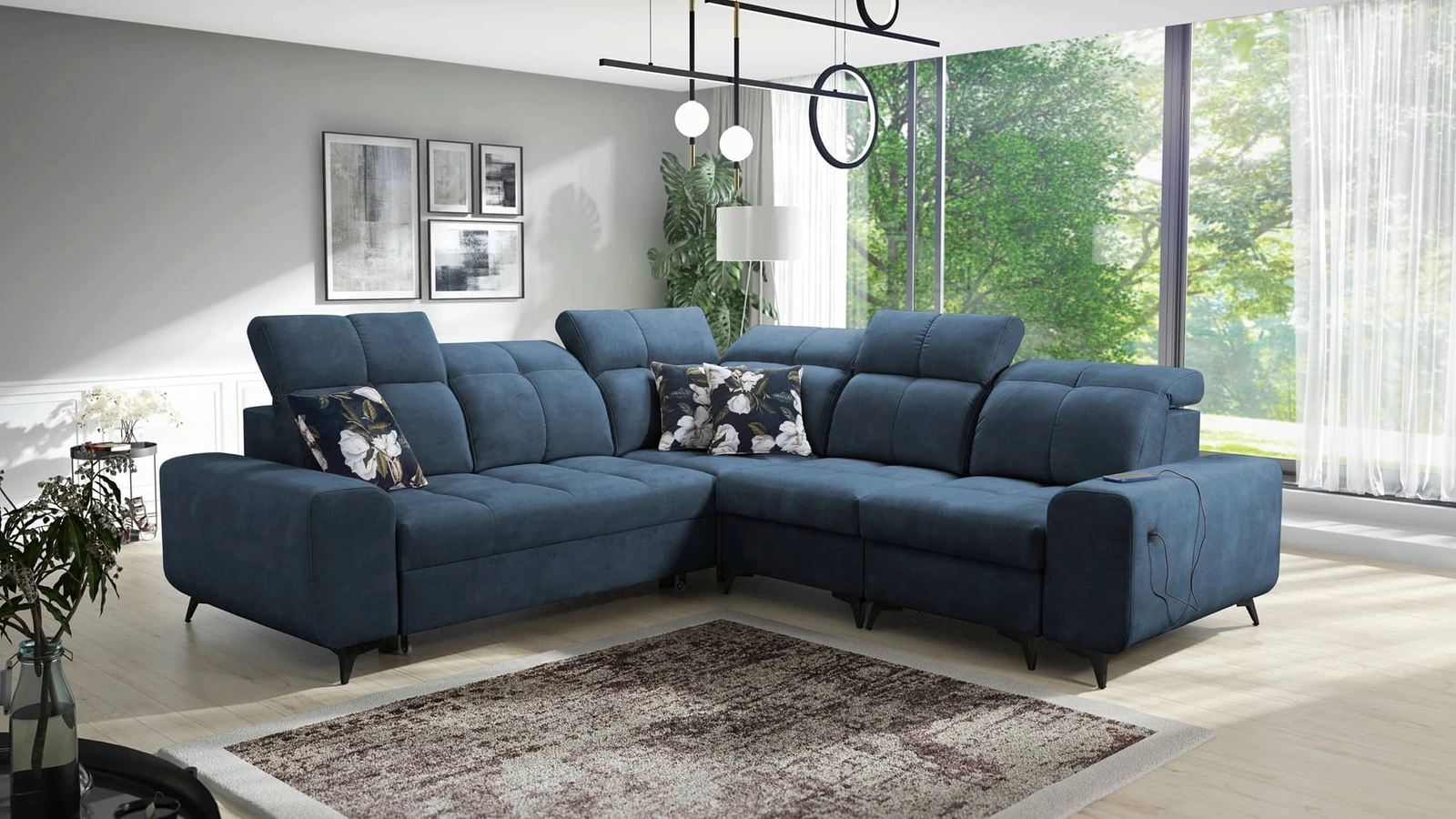 Mezi doplňky tohoto nábytku, které ocení všichni uživatelé, patří dva kontejnery na lůžkoviny, nastavitelné opěrky hlavy a nabíjecí zásuvka USB na boku rohové skříně.