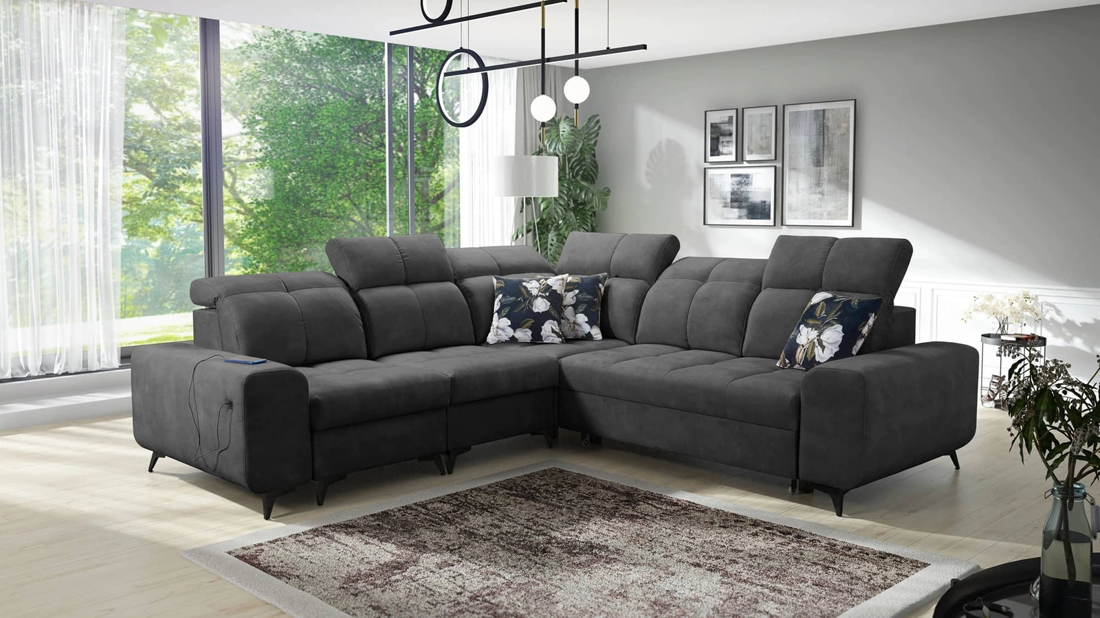 Mezi doplňky tohoto nábytku, které ocení všichni uživatelé, patří dva kontejnery na lůžkoviny, nastavitelné opěrky hlavy a nabíjecí zásuvka USB na boku rohové skříně.