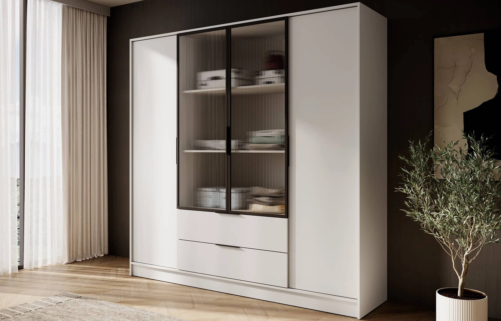 - Výklopná skříň Corse je pečlivě vyrobený a estetický kus nábytku. Moderní design skříně se hodí do každého interiéru. Neobvyklá čela s drážkovaným sklem a vkusnými úchyty na okrajích podtrhují styl a eleganci masivních skříní.