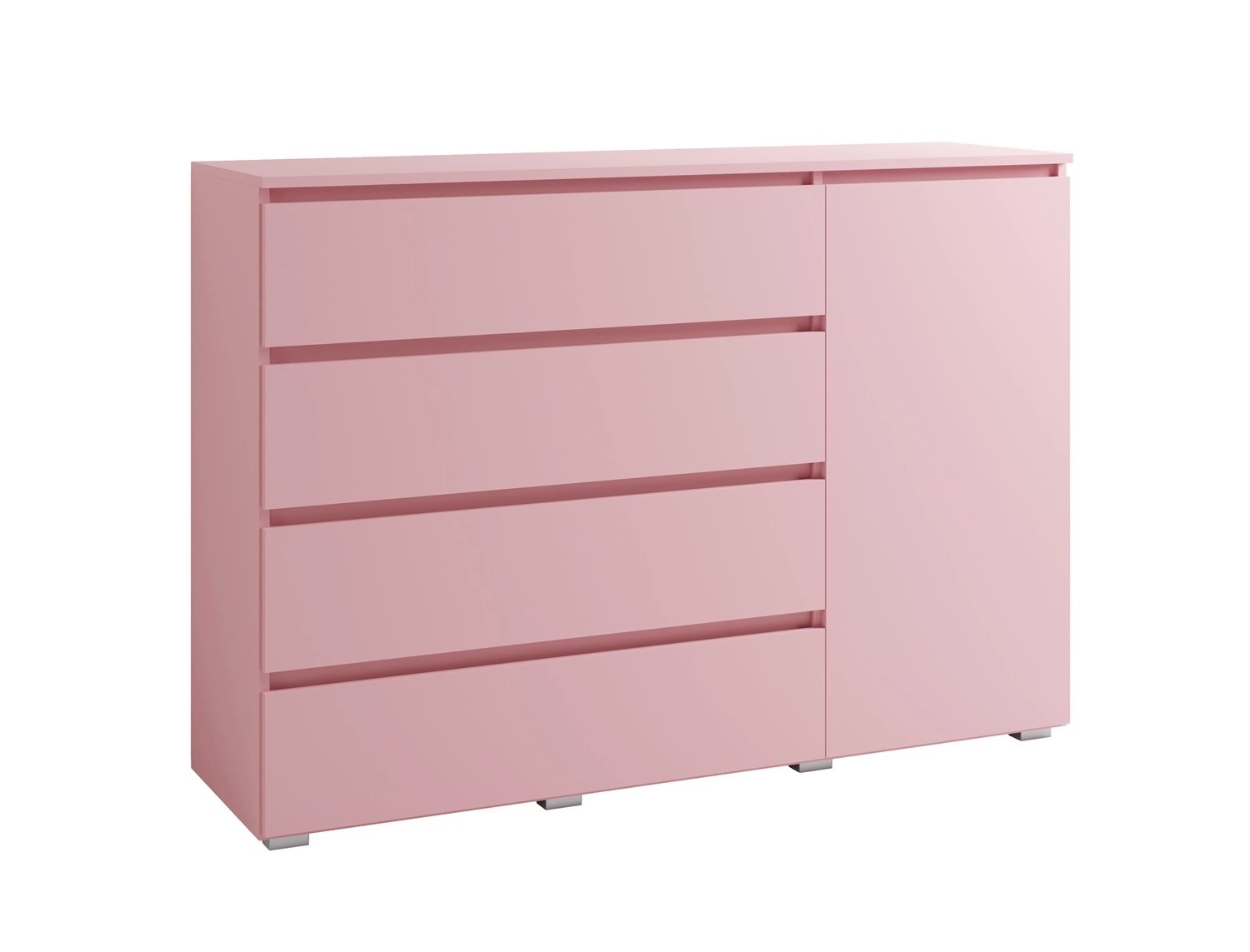 Jednoduchá komoda 138 cm v pudrově růžové barvě vytvoří útulný a elegantní prostor v každém dívčím pokoji.