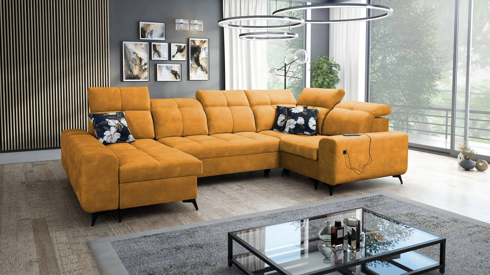 Mezi další funkce tohoto nábytku, které ocení všichni uživatelé, patří až dva kontejnery na lůžkoviny, nastavitelné opěrky hlavy a nabíjecí zásuvka USB v boční části rohové skříně.