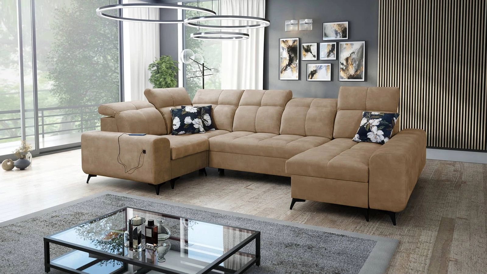 Mezi další funkce tohoto nábytku, které ocení všichni uživatelé, patří až dva kontejnery na lůžkoviny, nastavitelné opěrky hlavy a nabíjecí zásuvka USB v boční části rohové skříně.