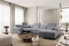 Rohová pohovka Penejos IV Lux v šedé barvě s výsuvnou podnožkou je mimořádně pohodlný kus nábytku se zajímavou povrchovou úpravou.