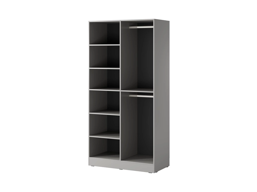 Šatní skříň Sandbox 101 cm v šedé barvě je estetický a funkční kus nábytku, který se uplatní v mnoha interiérech.