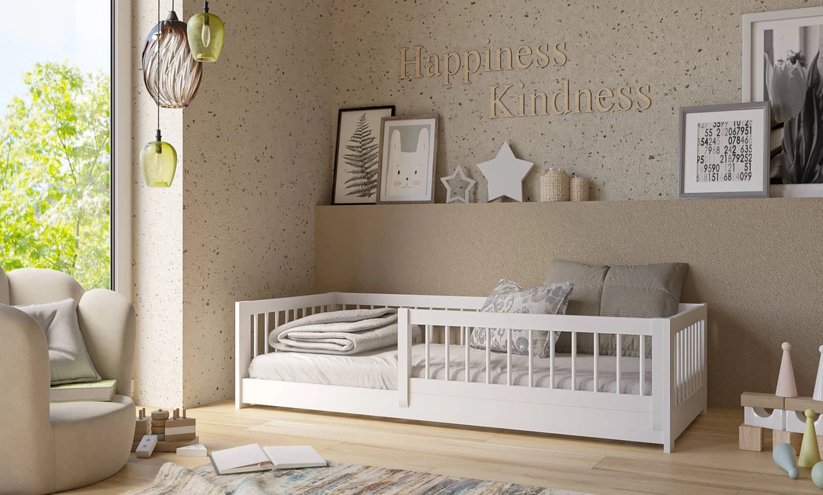 - Dětská postel Alova dokonale zapadne do každého stylu dětského pokoje. Dětská postel je vyrobena z masivního borovicového dřeva. Umístění přímo na podlahu zvyšuje pohodlí a chrání dítě před nešťastnými pády.