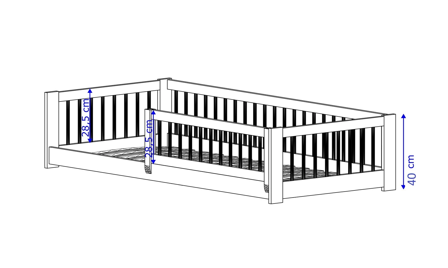 Dřevěná postel Felipo je ideální volbou pro dětský pokoj. Solid design postel poskytuje pohodlí a bezpečí při spánku a hraní. Postel je vyrobena z masivního borovicového dřeva lakovanýkterý se vyznačuje velkým robustní a odolné vůči vnějším faktorům. Velkou výhodou dětské postele Felipo je absence nožiček, takže postel je umístěna přímo na podlaze, a přítomnost roštu vysokého zábradlí. To zvyšuje pohodlí a chrání dítě před nešťastnými pády.