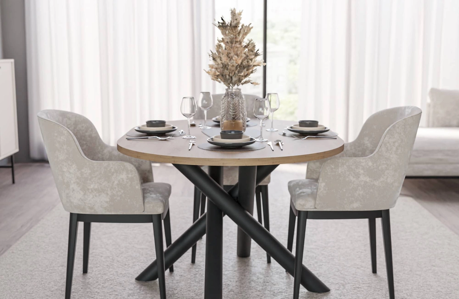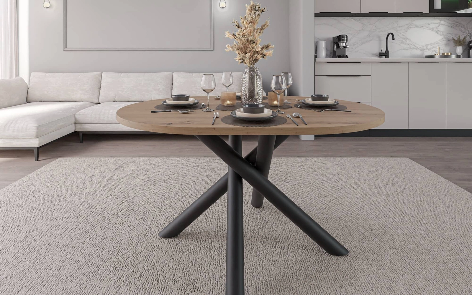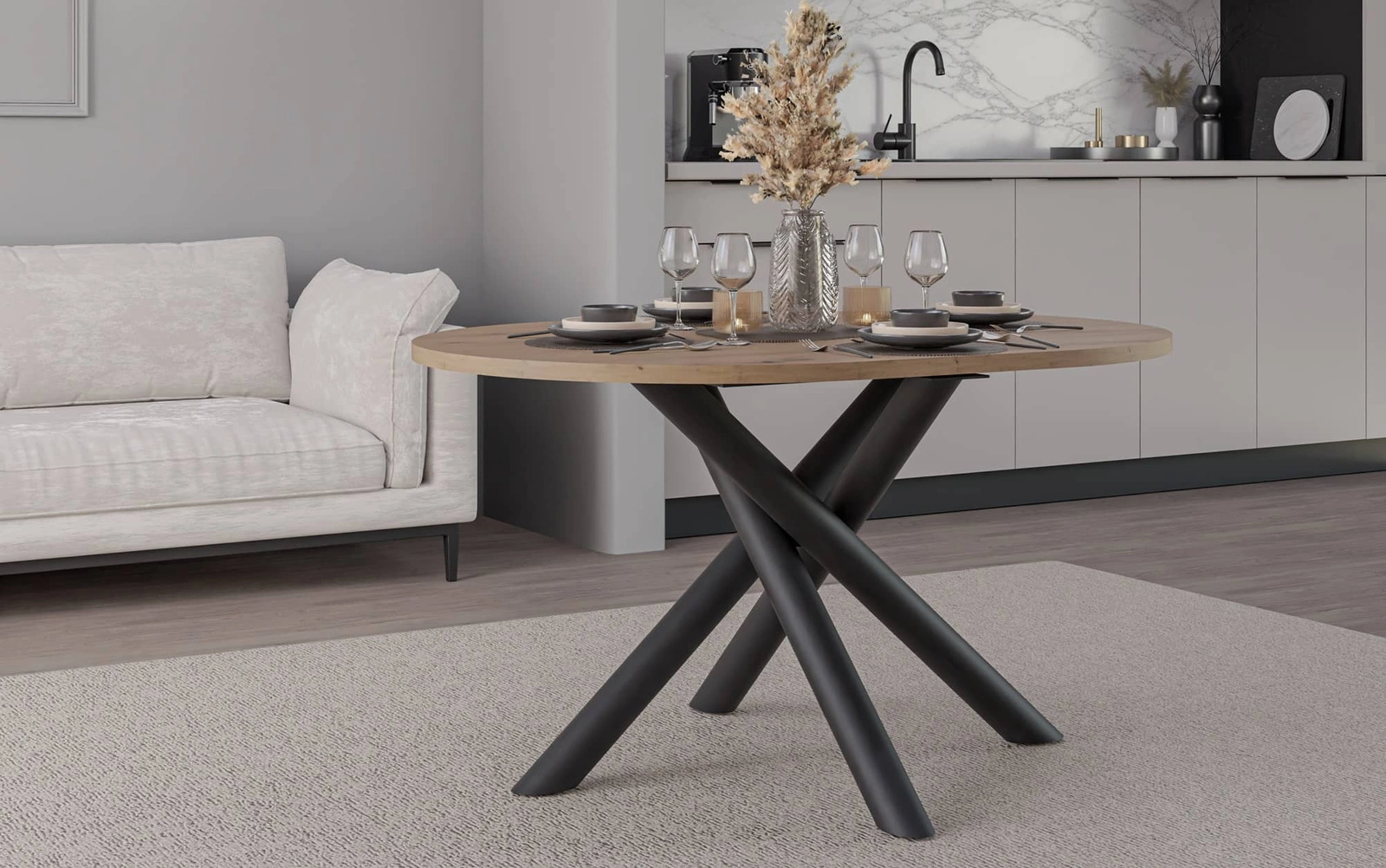Stůl Lyon 110 cm v barvě dub artisan / černá je stylový kus nábytku, který dokonale zapadne do každé moderní jídelny.