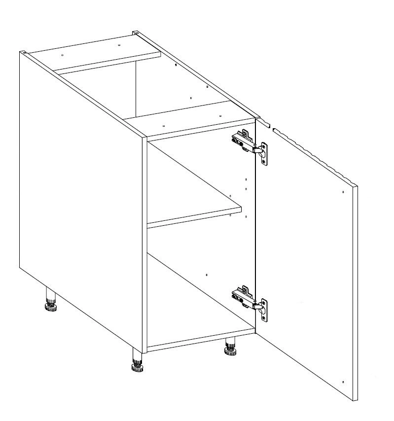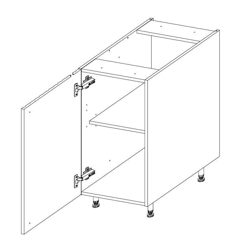 Kuchyňská spodní skříňka se dodává po částech, které jsou zabaleny v pětivrstvé lepenkové krabici. Veškeré kování potřebné k montáži, tj. šrouby, vruty, hmoždinky, panty, úchytky, zátky, je přibaleno společně s komponenty kuchyňské skříňky.
