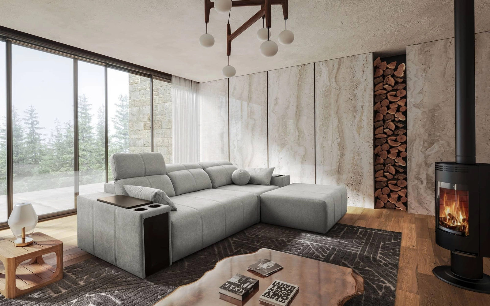 Rohová pohovka Tesalia v šedém jasanu je mimořádně funkční kus nábytku se stylovou povrchovou úpravou.