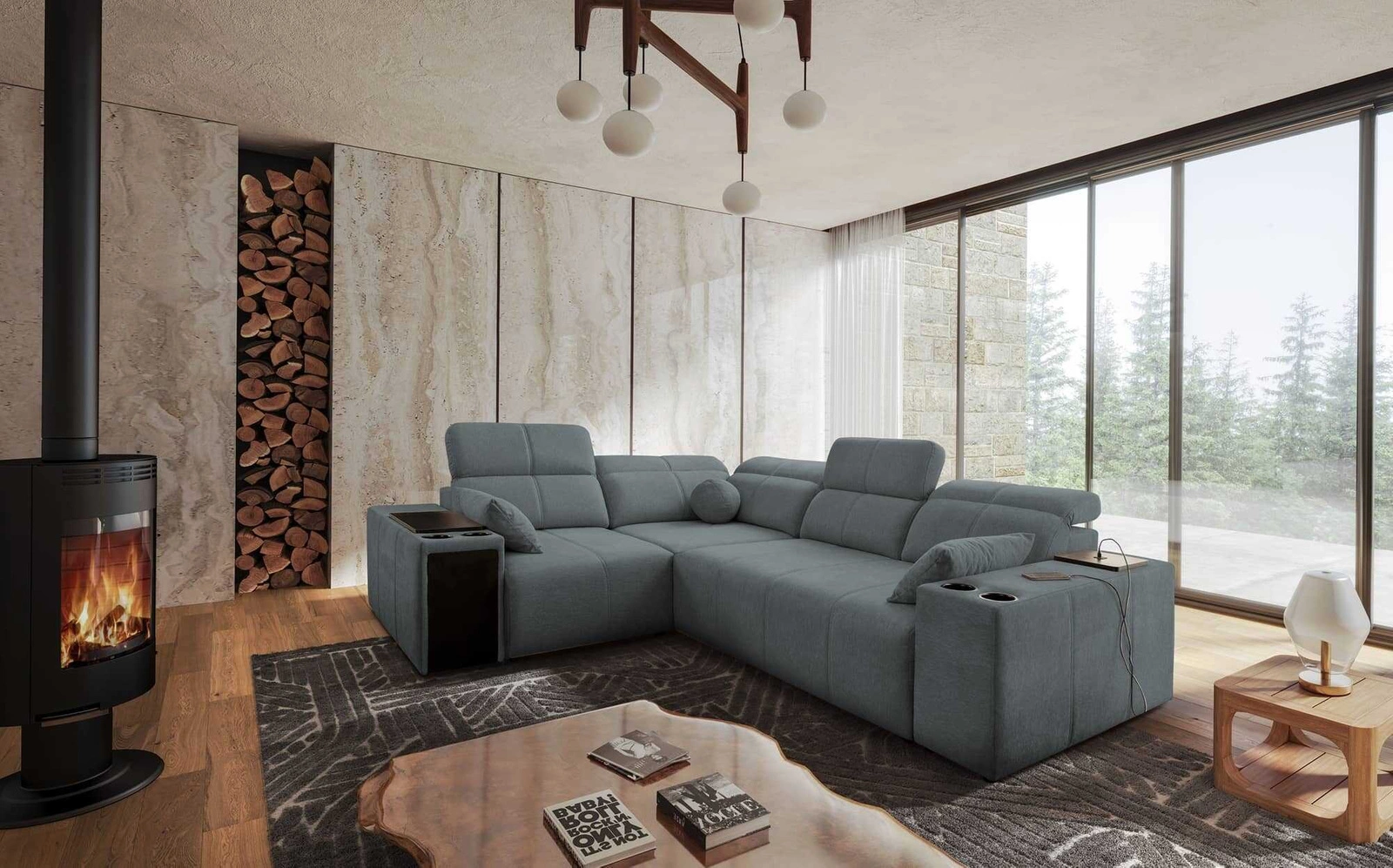 Rohová pohovka Tesalia II v šedé barvě je mimořádně funkční kus nábytku se stylovou povrchovou úpravou.
