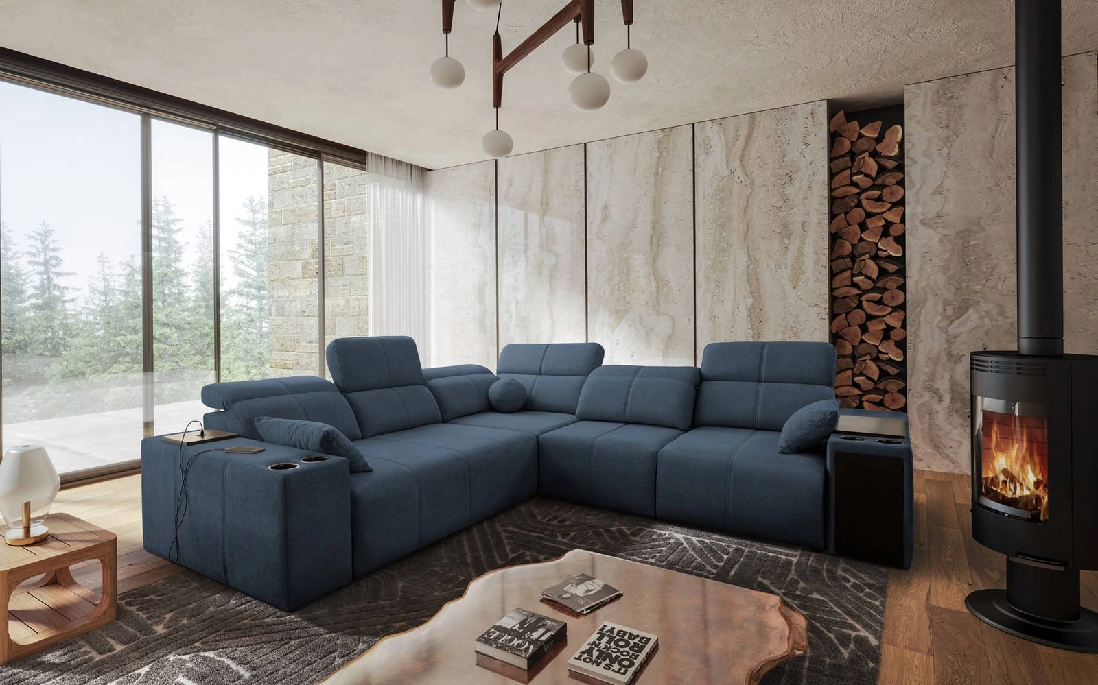 Rohová pohovka Tesalia III v modré barvě je vysoce funkční kus nábytku se stylovou povrchovou úpravou.