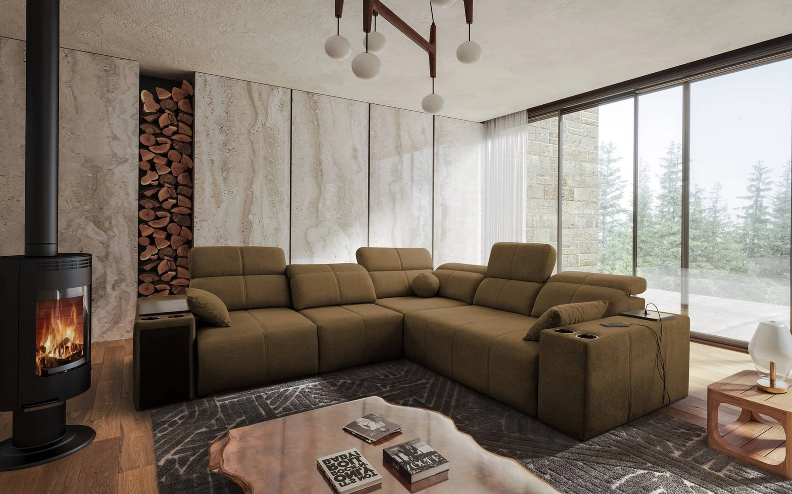 Rohová pohovka Tesalia III v hnědé barvě je mimořádně funkční kus nábytku se stylovou povrchovou úpravou.