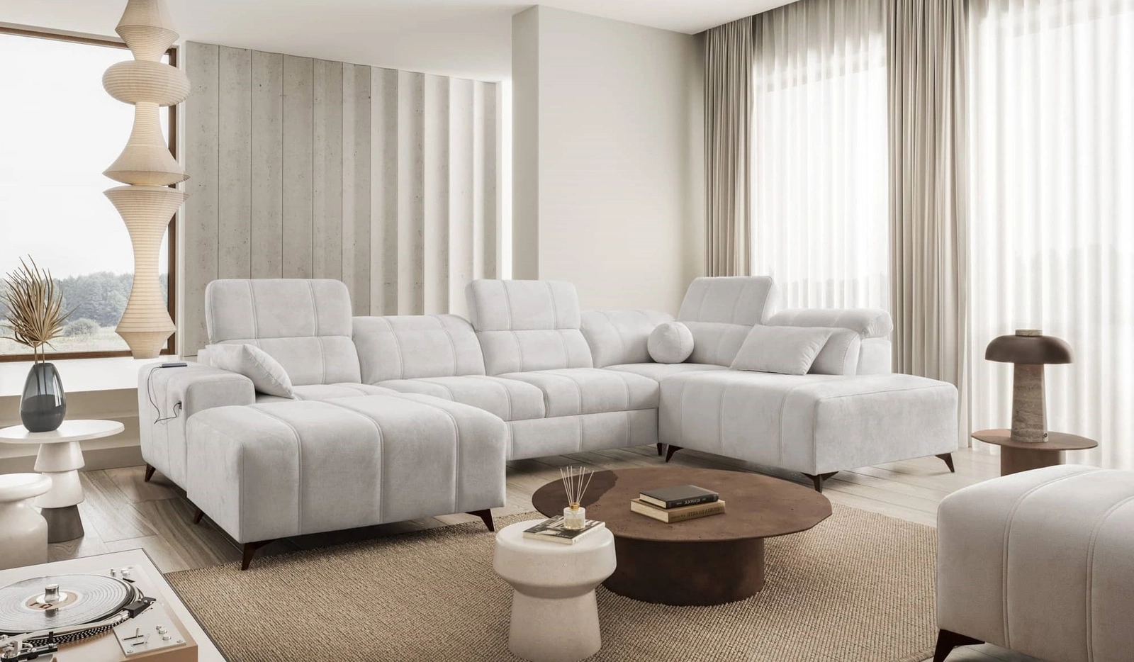 Rohová pohovka Penejos VI v šedém jasanu s nastavitelnými opěrkami hlavy je nádherný kus nábytku se zárukou nejvyššího pohodlí a funkčnosti.