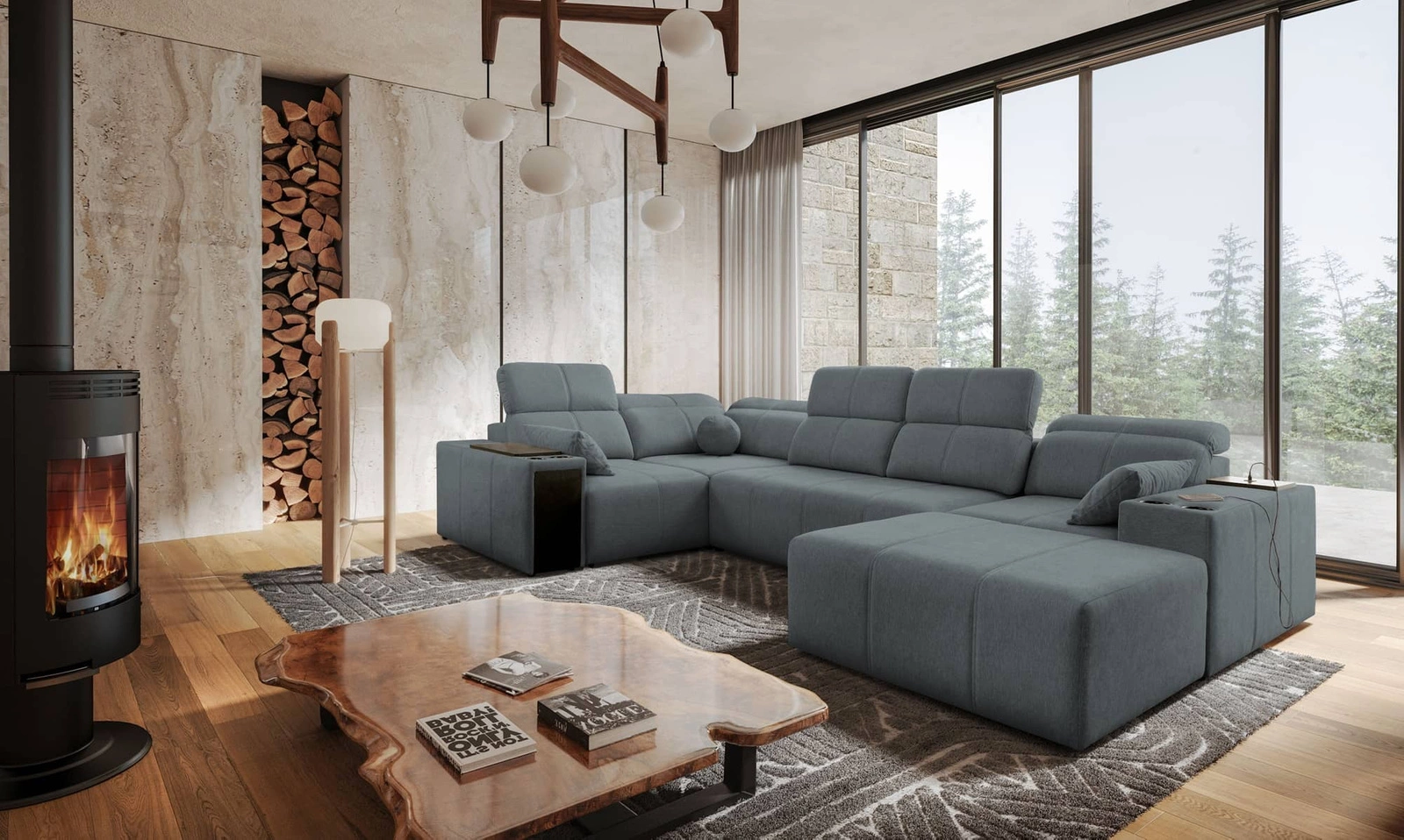 Mezi doplňky tohoto kusu nábytku, které ocení všichni uživatelé, patří nastavitelné opěradlo, které umožňuje nastavit hloubku sedáku, zásuvka a otevírací lišta v boční části rohu, nabíjecí zásuvka USB, držáky na nápoje a dvě nádoby na lůžkoviny.