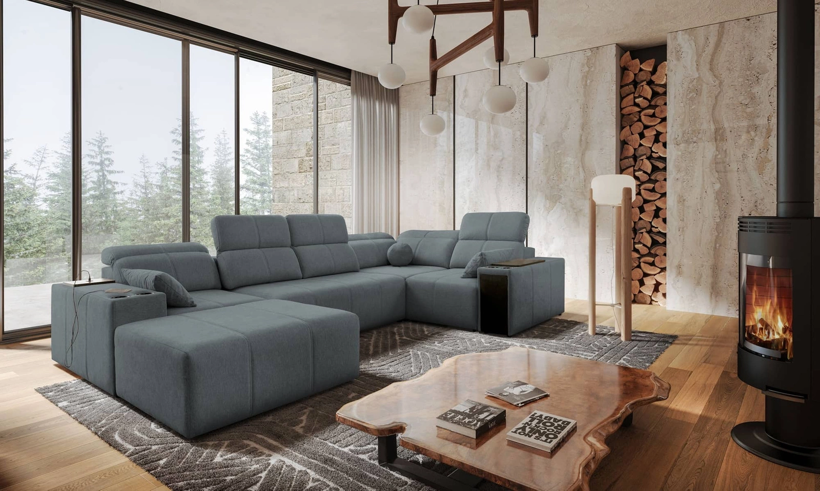 Mezi doplňky tohoto kusu nábytku, které ocení všichni uživatelé, patří nastavitelné opěradlo, které umožňuje nastavit hloubku sedáku, zásuvka a otevírací lišta v boční části rohu, nabíjecí zásuvka USB, držáky na nápoje a dvě nádoby na lůžkoviny.