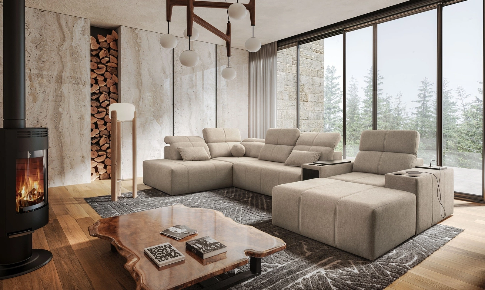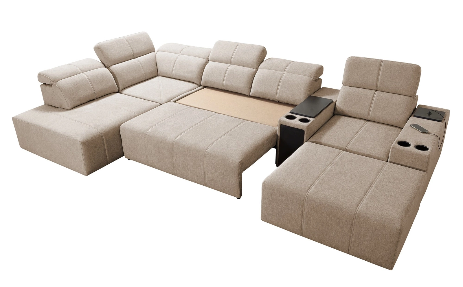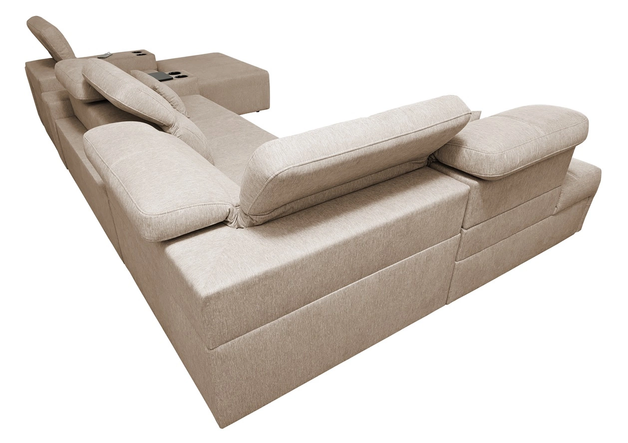 Doplňky tohoto nábytku, které ocení všichni uživatelé, jsou zásuvka a otevírací tyč v boční části rohu, nabíjecí zásuvka USB, držáky na nápoje, nastavitelné opěradlo pro úpravu hloubky sedáku a dva kontejnery na lůžkoviny.