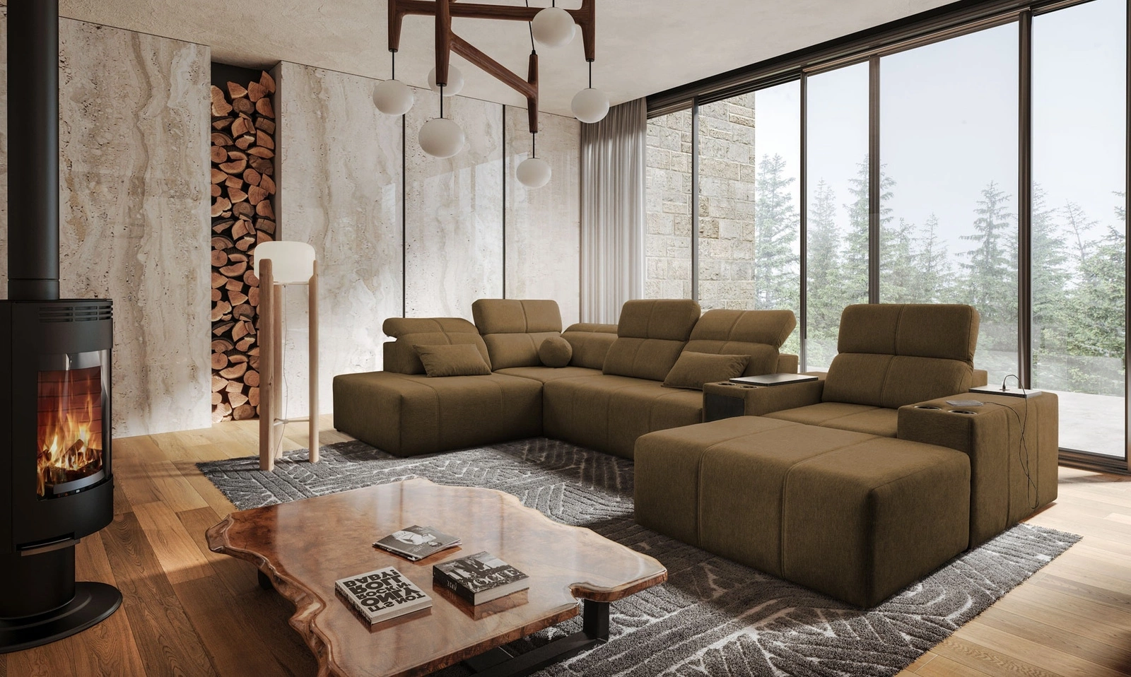 Rohová pohovka Thessaly V v hnědé barvě je mimořádně funkční kus nábytku se stylovou povrchovou úpravou.