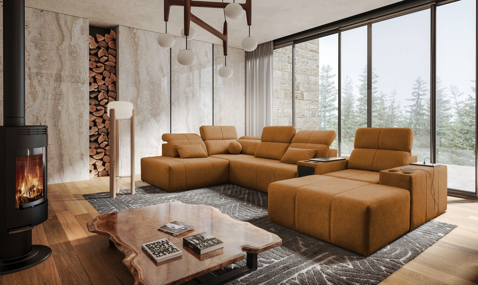 Rohová pohovka Thessaly V v medové barvě je mimořádně funkční kus nábytku se stylovou povrchovou úpravou.