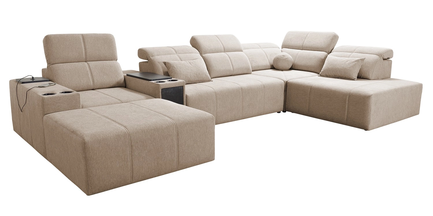 Detal narożnika z funkcją spania Tesalia V Narożnik z szufladą i otwieranym barkiem Cup holder