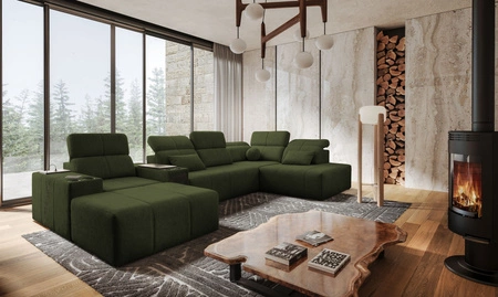 Rohová pohovka Thessaly V v zelené barvě je mimořádně funkční kus nábytku se stylovou povrchovou úpravou.