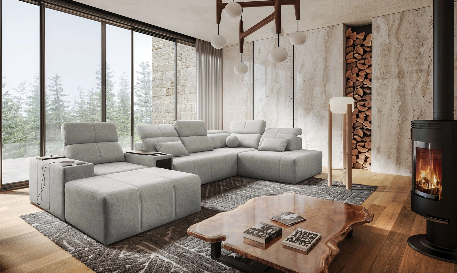 Doplňky tohoto nábytku, které ocení všichni uživatelé, jsou zásuvka a otevírací tyč v boční části rohu, nabíjecí zásuvka USB, držáky na nápoje, nastavitelné opěradlo pro úpravu hloubky sedáku a dva kontejnery na lůžkoviny.
