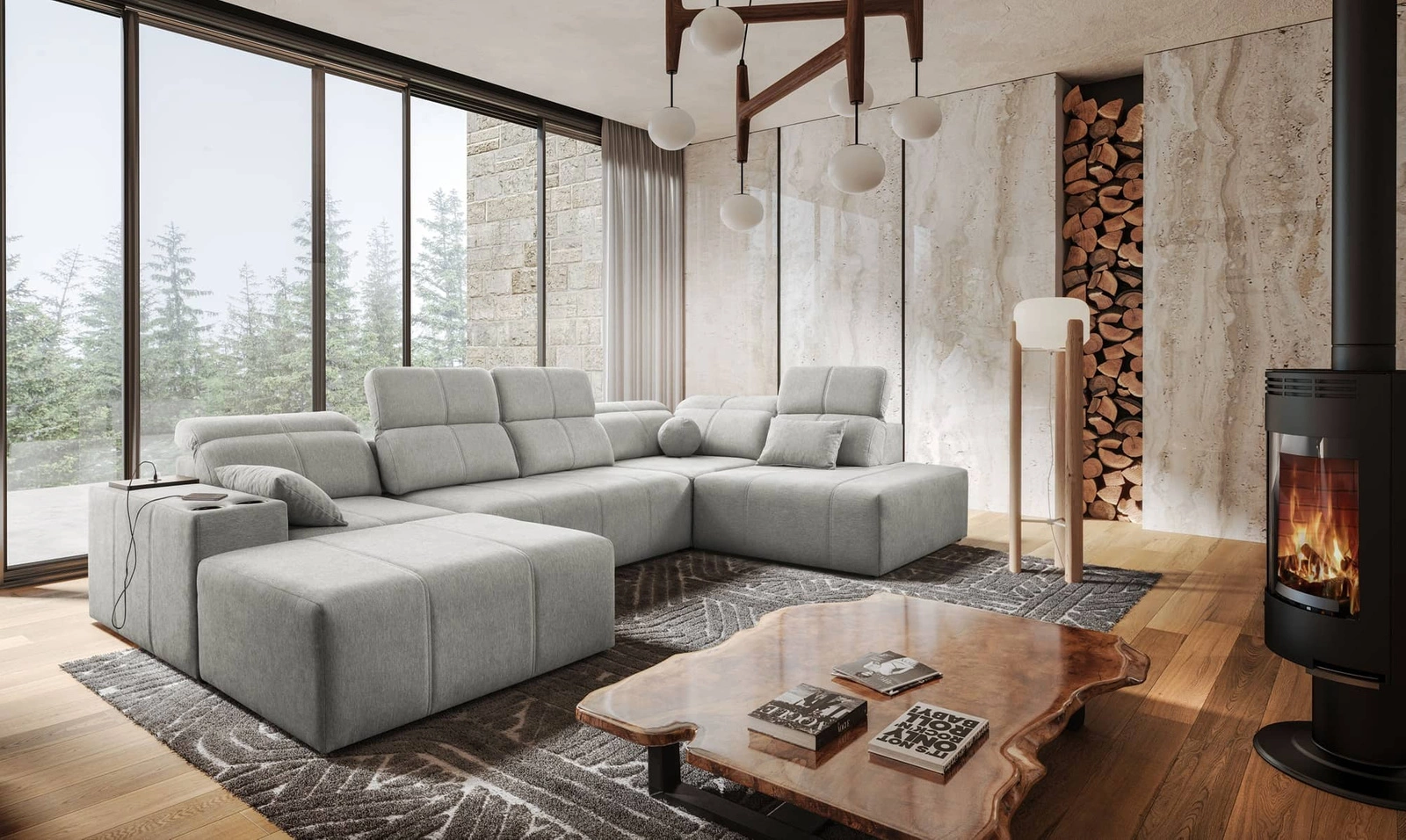 Rohová pohovka Thessaly VI v šedém jasanu je mimořádně funkční kus nábytku se stylovou povrchovou úpravou.