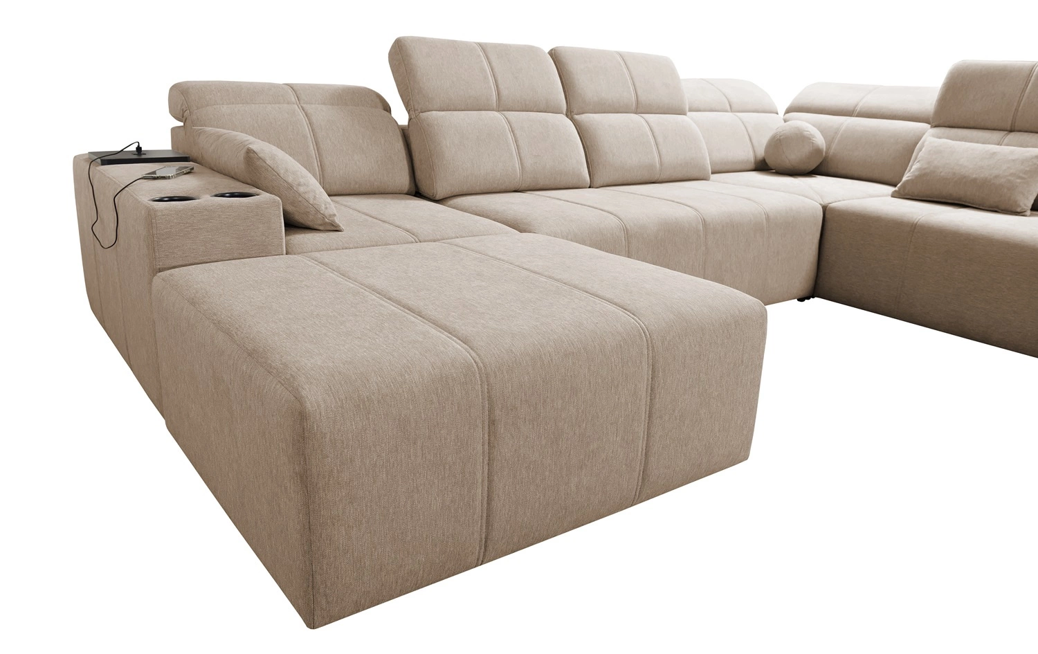 Příslušenství tohoto nábytku, které ocení všichni uživatelé, je zásuvka USB pro nabíjení, držáky na nápoje, nastavitelné opěradlo pro úpravu hloubky sedáku a dva zásobníky na lůžkoviny.
