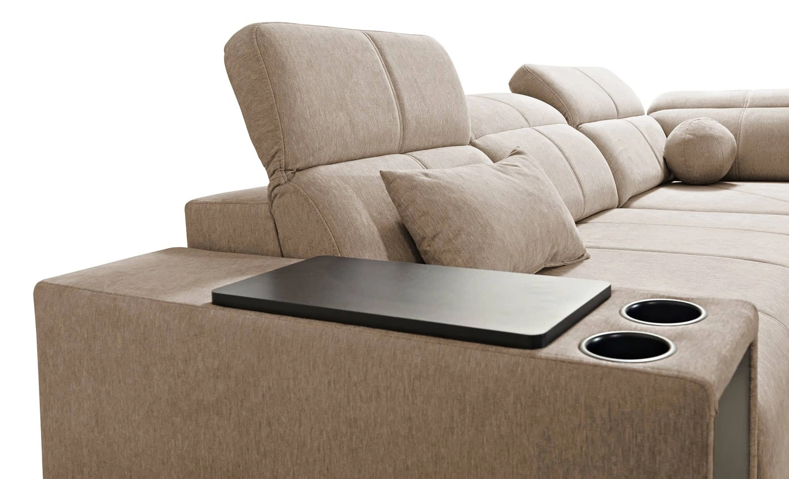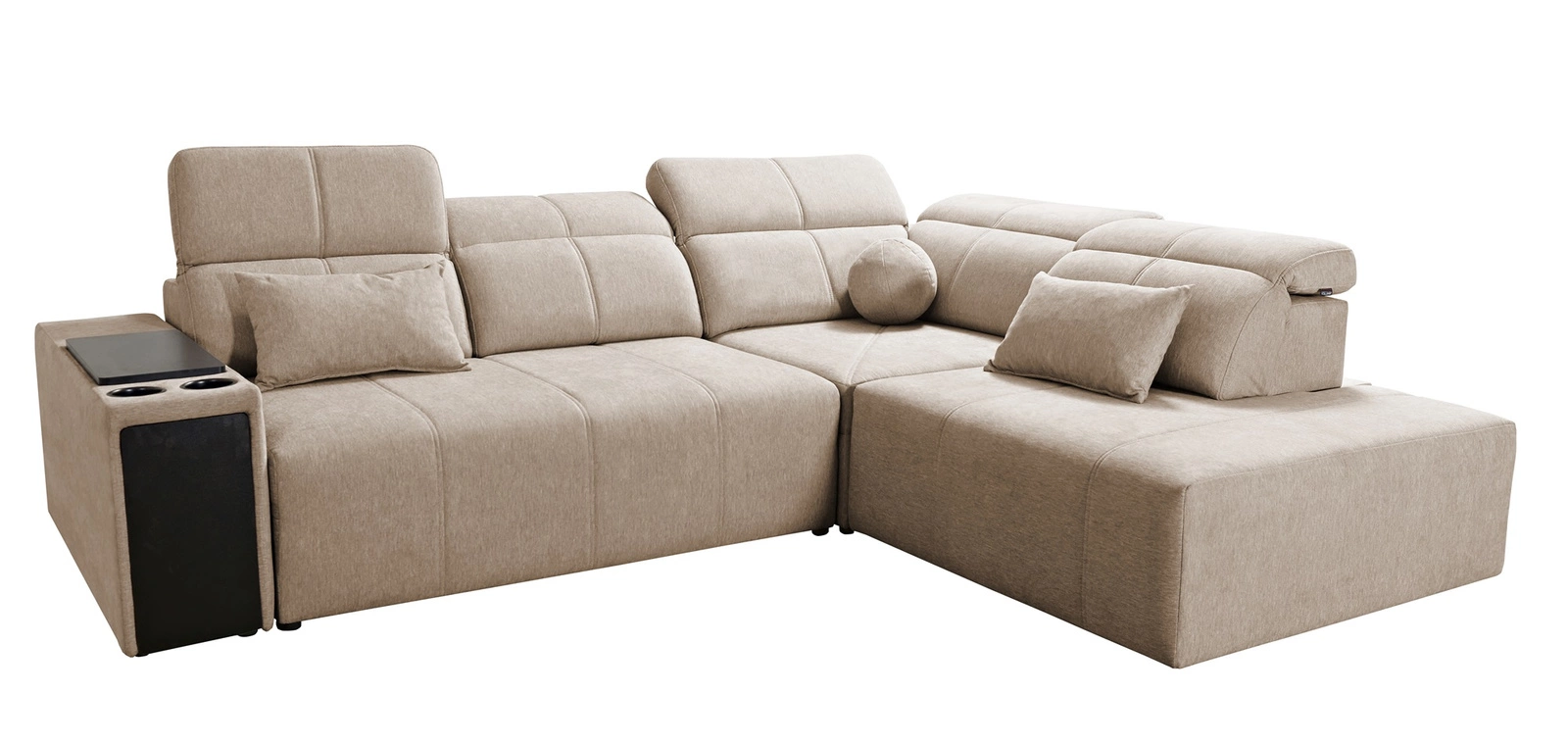 Mezi doplňky tohoto kusu nábytku, které ocení všichni uživatelé, patří nastavitelné opěradlo, které umožňuje nastavit hloubku sedáku, zásuvka a otevírací lišta v boční části rohu, nabíjecí zásuvka USB, držáky na nápoje a nádoba na lůžkoviny.