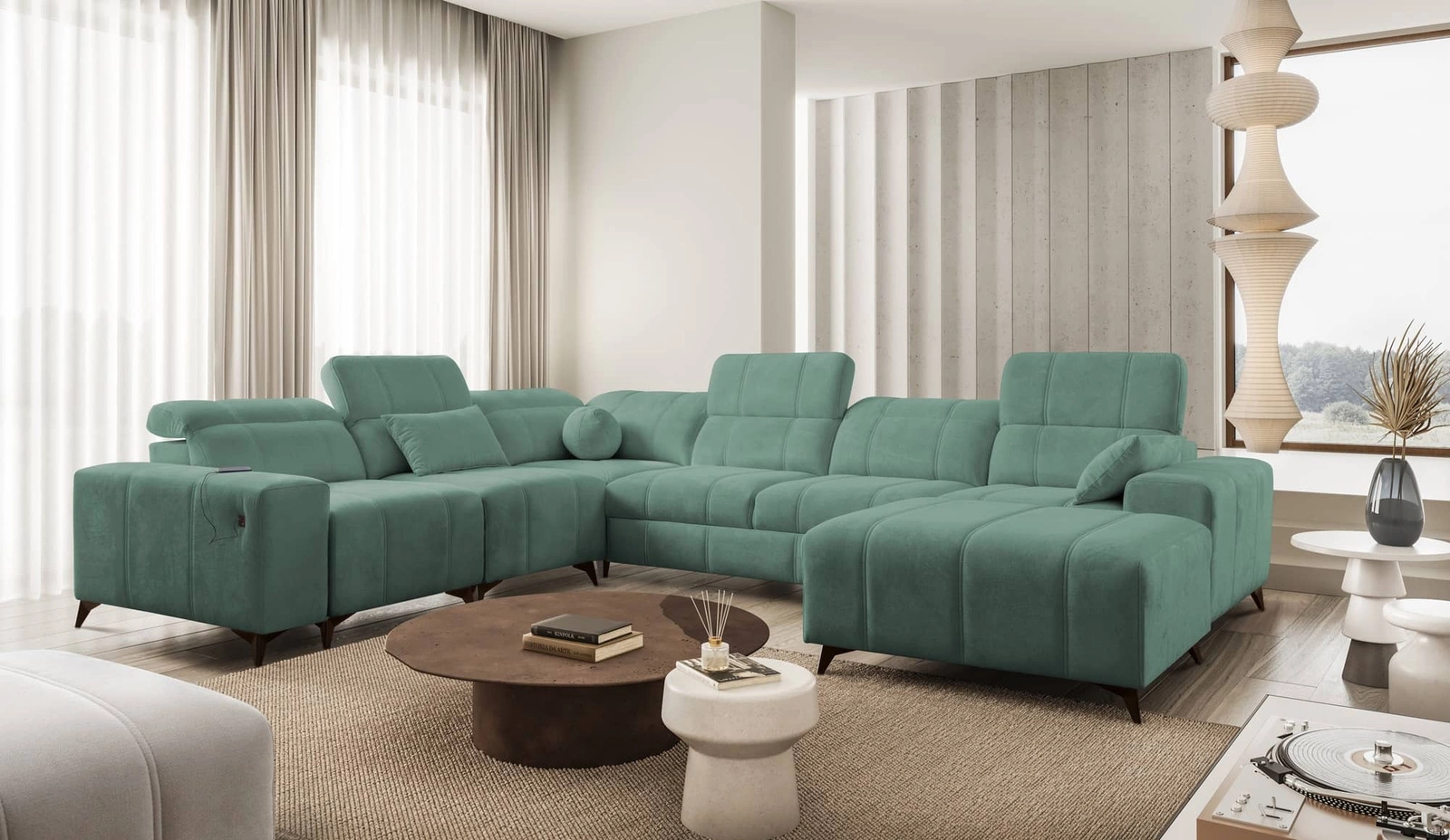 Rohová pohovka Penejos VIII v zelené barvě s nastavitelnými opěrkami hlavy je nádherný kus nábytku se zárukou nejvyššího pohodlí a funkčnosti.